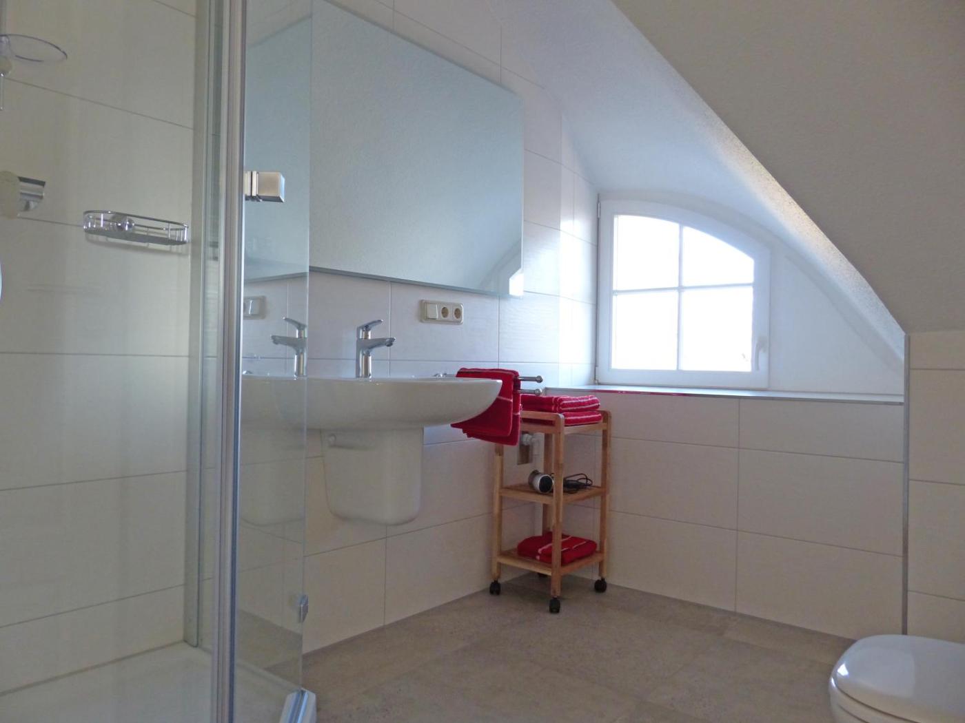 Apartment mit Balkon. This spacious apartment comes with a kitchen, a seating area, 2 separate bedrooms and 1 bathroom with a shower and a hairdryer. Guests can make meals in the kitchen that features a stovetop, a refrigerator, a dishwasher and kitchenware. Boasting a balcony, this apartment also features a coffee machine, a wardrobe and a TV. The unit has 2 beds.