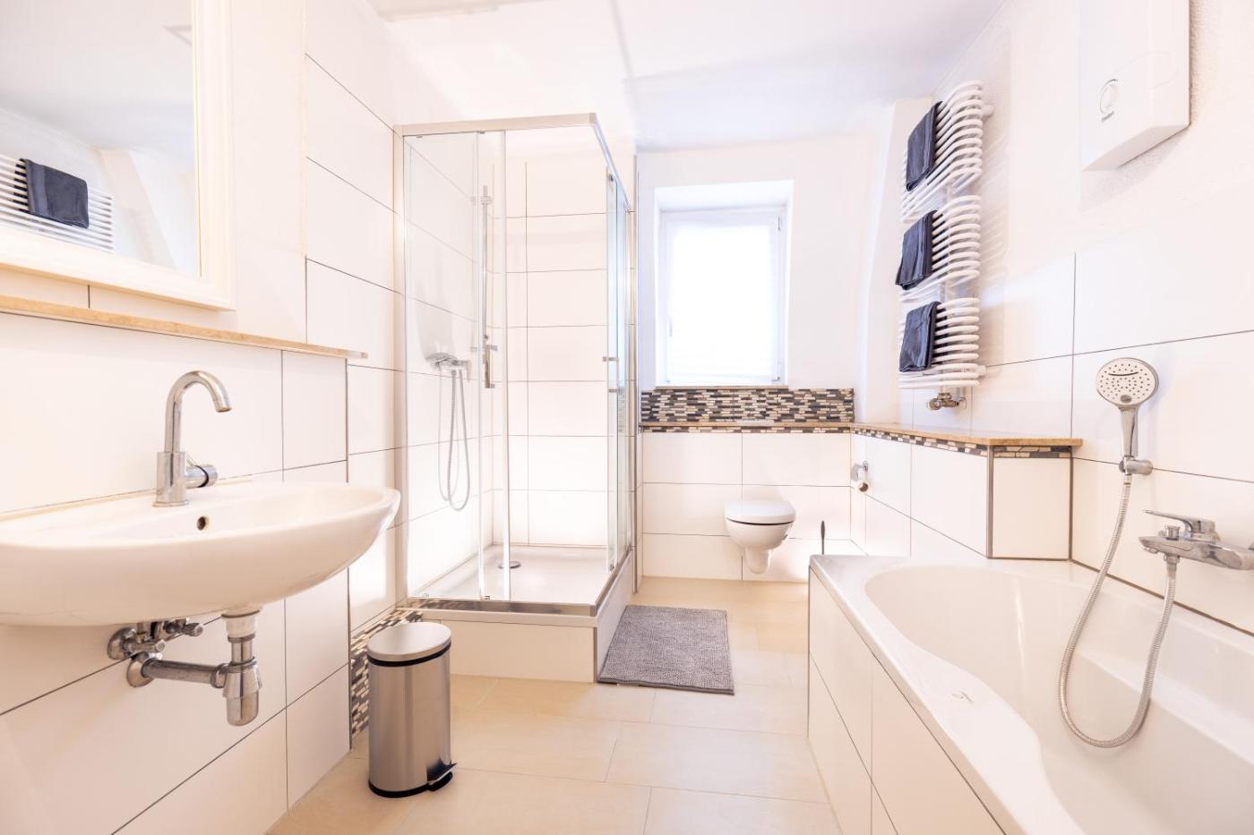 Haus mit 3 Schlafzimmern. This spacious holiday home features 1 living room, 3 separate bedrooms and 2 bathrooms with a shower. In the well-equipped kitchen, guests will find a stovetop, a refrigerator, a dishwasher and kitchenware. The holiday home features a washing machine, a seating area, a dining area, a wardrobe, as well as a flat-screen TV. The unit has 4 beds.