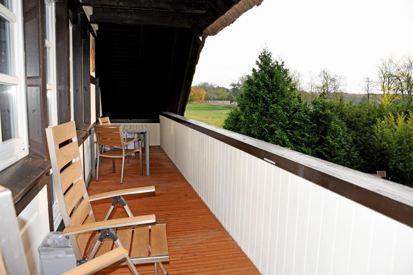 Die Unterkunft Reetdachfachwerkvilla am Wiesengrund bietet eine Terrasse.