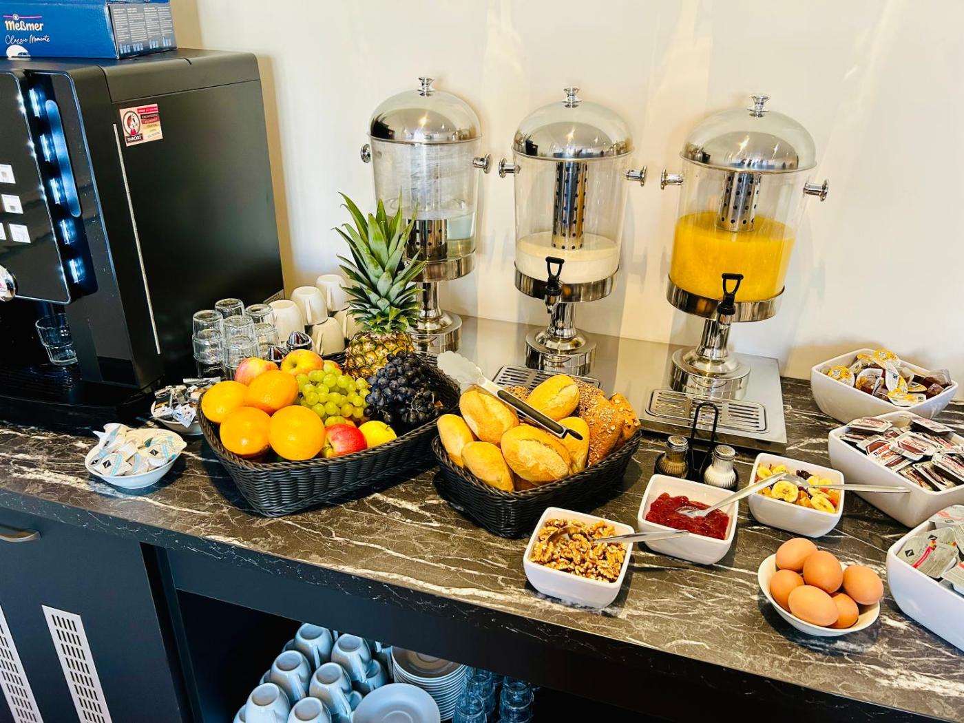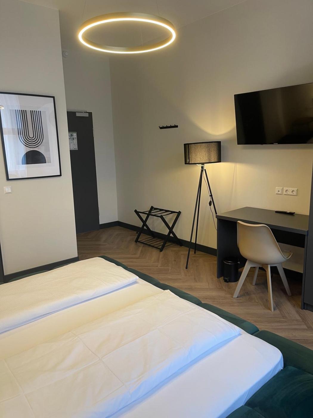 In der Unterkunft Motel Blue Messe ist jedes Zimmer ergänzt mit einem Schreibtisch, einem Flachbild-TV, einem eigenen Badezimmer, Bettwäsche und Handtüchern. Bestimmte Zimmer sind ausgestattet mit einer Küchenzeile mit einem Kühlschrank und einer Herdplatte. Alle Zimmer haben einen Safe.