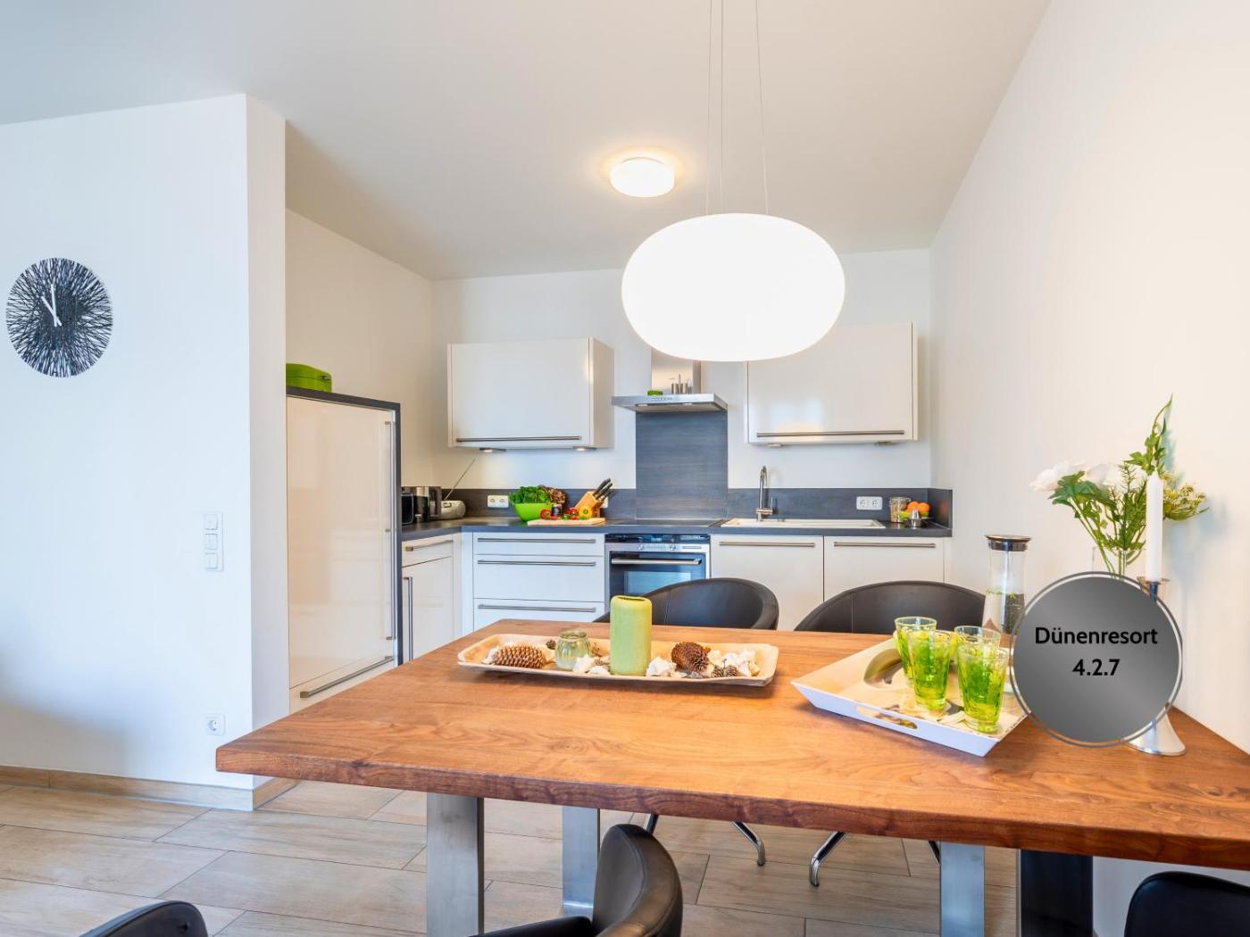 Die Unterkunft Ostsee-Traumferienwohnungen Dünenresort mit Meerblick und Balkon bietet ihren Gästen einen Balkon, Meerblick, einen Sitzbereich, einen Kabel Flachbild-TV, eine voll ausgestattete Küchenzeile mit einem Kühlschrank und einem Ofen sowie ein eigenes Badezimmer mit einer Dusche und kostenlosen Pflegeprodukten. Es gibt eine Mikrowelle, eine Herdplatte und einen Toaster sowie eine Kaffeemaschine und einen Wasserkocher.