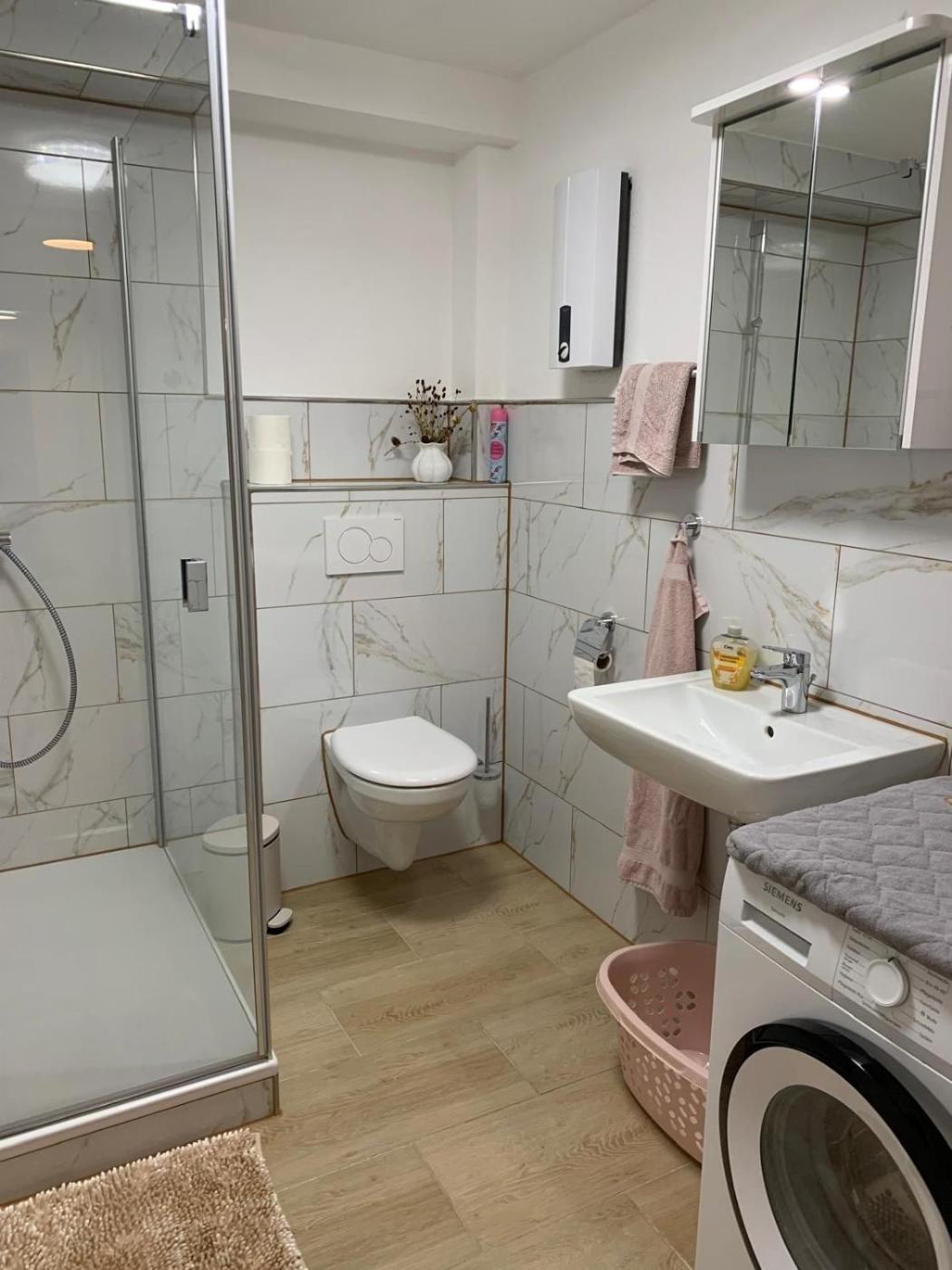 Apartment mit 2 Schlafzimmern. The fully equipped kitchen has a stovetop, a refrigerator, a dishwasher and kitchenware. The apartment features parquet floors, a seating area with a flat-screen TV with satellite channels, a washing machine, a dining area, as well as a wardrobe. The unit offers 3 beds.