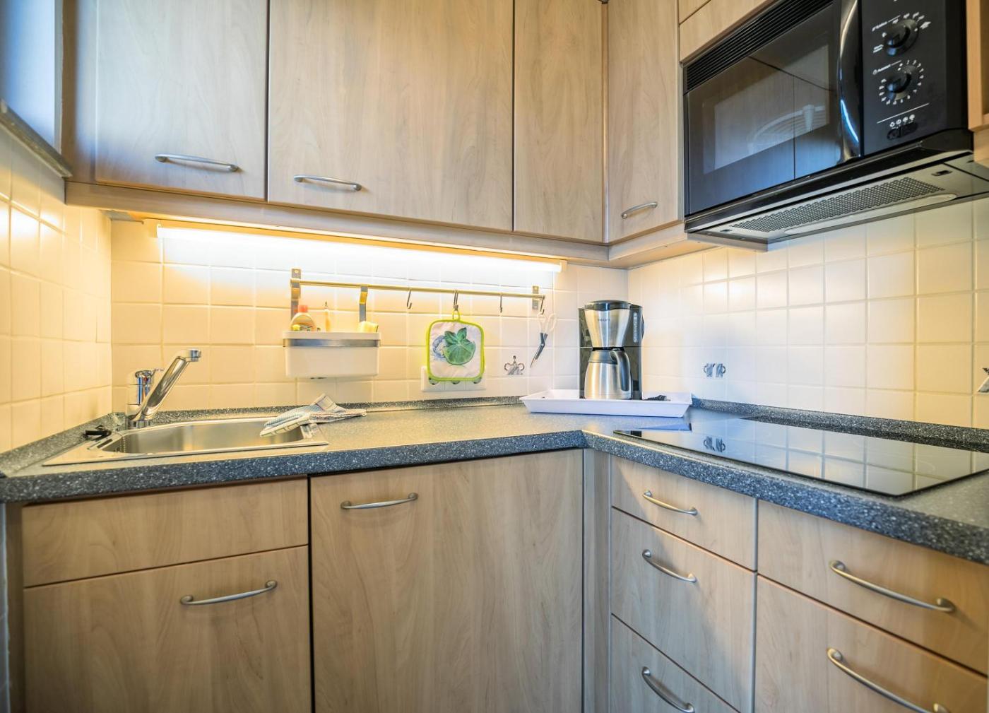 Apartment mit Balkon. This apartment comes with 1 living room, 1 separate bedroom and 1 bathroom with a shower and a hairdryer. Guests can make meals in the kitchen that features a stovetop, a refrigerator, kitchenware and a microwave. A seating area with a TV, a coffee machine and a balcony are available in this apartment. The unit has 2 beds.