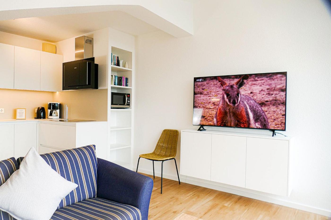 Apartment mit Meerblick. This apartment comes with 1 living room, 1 separate bedroom and 1 bathroom with a shower and a hairdryer. Meals can be prepared in the kitchen, which features a stovetop, a refrigerator, a dishwasher and kitchenware. Boasting a balcony with sea views, this apartment also features a washing machine and a TV. The unit has 2 beds.