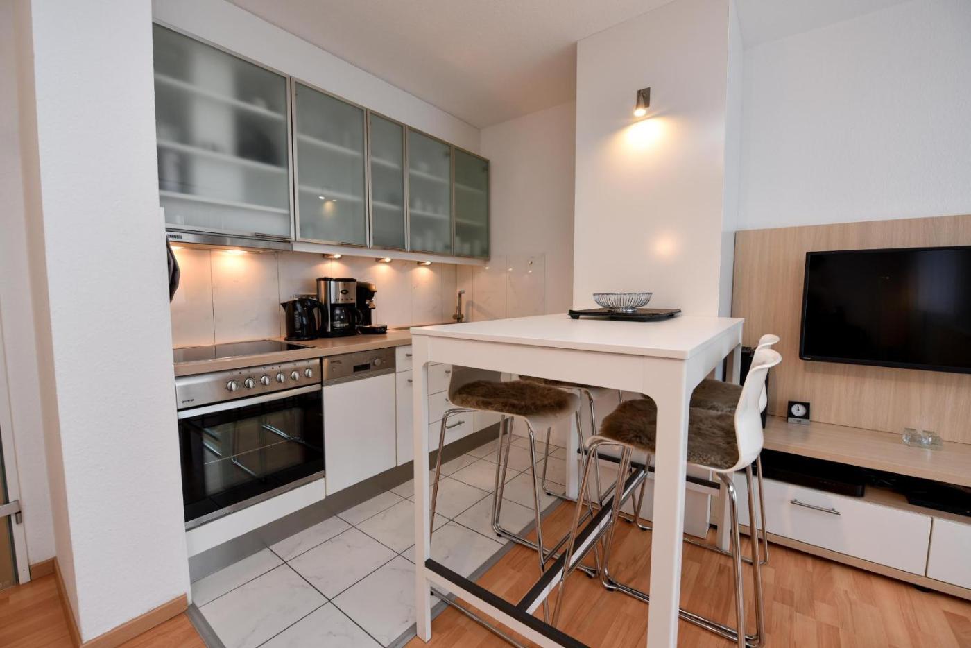 Apartment mit Balkon. This apartments standout features are the pool with a view and sauna. This apartment is comprised of 1 living room, 1 separate bedroom and 1 bathroom with a shower and a hairdryer. Guests can make meals in the kitchen that is fitted with a stovetop, a refrigerator, a dishwasher and kitchenware. This apartment features a washing machine, a coffee machine, a TV and a balcony. The unit offers 2 beds.