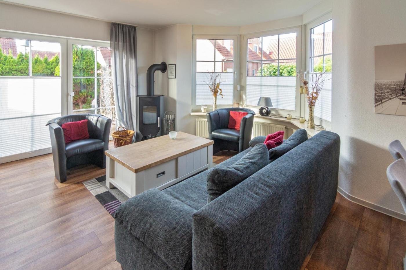Ferienhaus. This holiday home features a fireplace. Featuring a private entrance, this holiday home also comprises 2 bedrooms, a seating area and 1 bathroom with a shower and a hairdryer. Guests will find a stovetop, a refrigerator, a dishwasher and kitchenware in the fully equipped kitchen. The holiday home also provides guests with a barbecue. Boasting a terrace with garden views, this holiday home also provides a washing machine and a TV with satellite channels. The unit offers 3 beds.