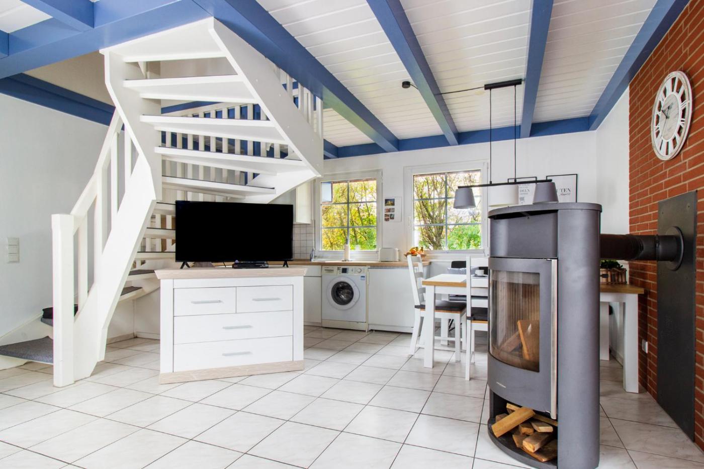 Ferienhaus. The fireplace is a top feature of this holiday home. Boasting a private entrance, this holiday home also comes with 3 bedrooms, a seating area and 2 bathrooms with a bath and a shower. Guests will find a stovetop, a refrigerator, a dishwasher and kitchenware in the fully equipped kitchen. The holiday home also includes a barbecue. Featuring a terrace with garden views, this holiday home also features a washing machine and a TV with cable channels. The unit has 5 beds.