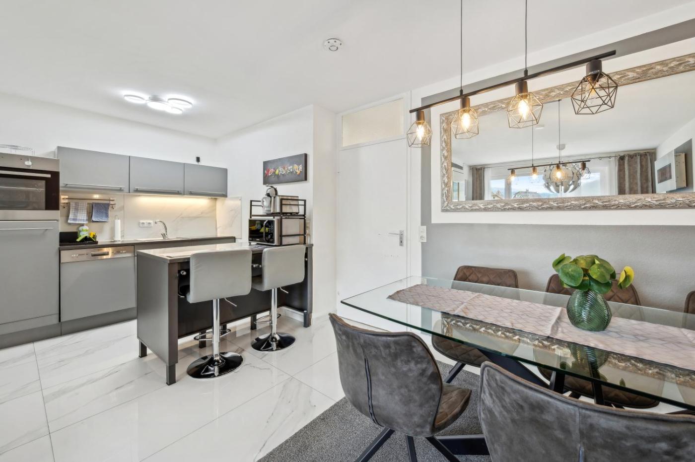 Apartment mit 1 Schlafzimmer. Boasting a private entrance, this apartment includes 1 living room, 1 separate bedroom and 1 bathroom with a walk-in shower and a bath. In the well-fitted kitchen, guests will find a stovetop, a refrigerator, a dishwasher and kitchenware. The apartment offers a flat-screen TV with streaming services, a washing machine, soundproof walls, a tea and coffee maker as well as mountain views. The unit has 2 beds.
