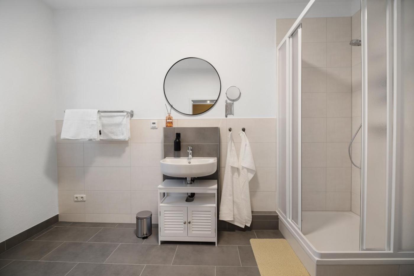 Apartment mit 2 Schlafzimmern und Gartenblick. This spacious apartment comprises a kitchen, a seating area, 2 separate bedrooms and 1 bathroom with a shower and a hairdryer. In the kitchen, guests will find a stovetop, a refrigerator, a dishwasher and an oven. The apartment provides a washing machine, a tea and coffee maker, a dining area, a flat-screen TV with streaming services, as well as garden views. The unit offers 5 beds.