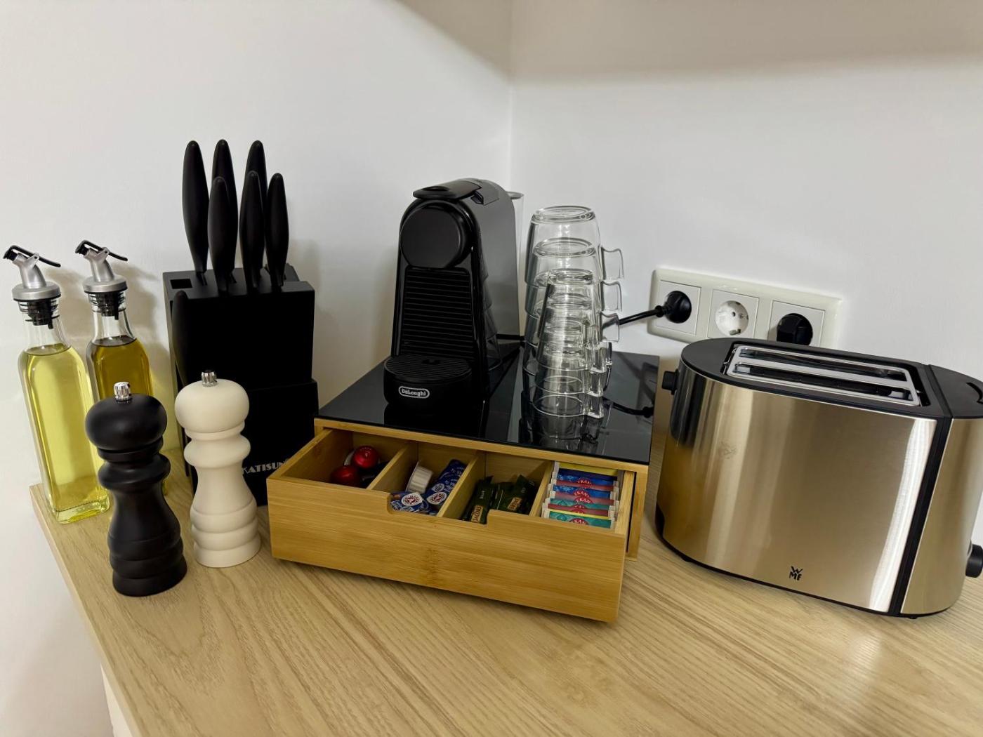 Diese Ferienwohnung besteht aus 2 Schlafzimmern, einem Wohnzimmer, einer voll ausgestatteten Küche mit einem Kühlschrank und einer Kaffeemaschine sowie 1 Badezimmer mit einer Dusche und kostenlosen Pflegeprodukten. In dieser Ferienwohnung werden Handtücher und Bettwäsche angeboten.