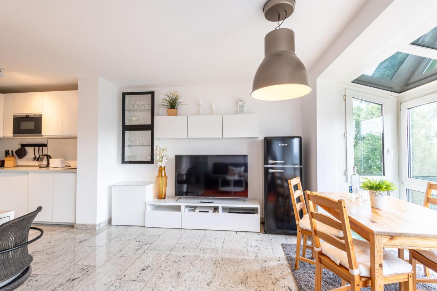 Apartment mit 1 Schlafzimmer. Featuring a private entrance, this apartment consists of 1 living room, 1 separate bedroom and 1 bathroom with a shower and a hairdryer. Guests can make meals in the kitchen that is equipped with a stovetop, a refrigerator, a dishwasher and kitchenware. The apartment provides a washing machine, a tea and coffee maker, a seating area, a flat-screen TV with streaming services, as well as garden views. The unit offers 2 beds.