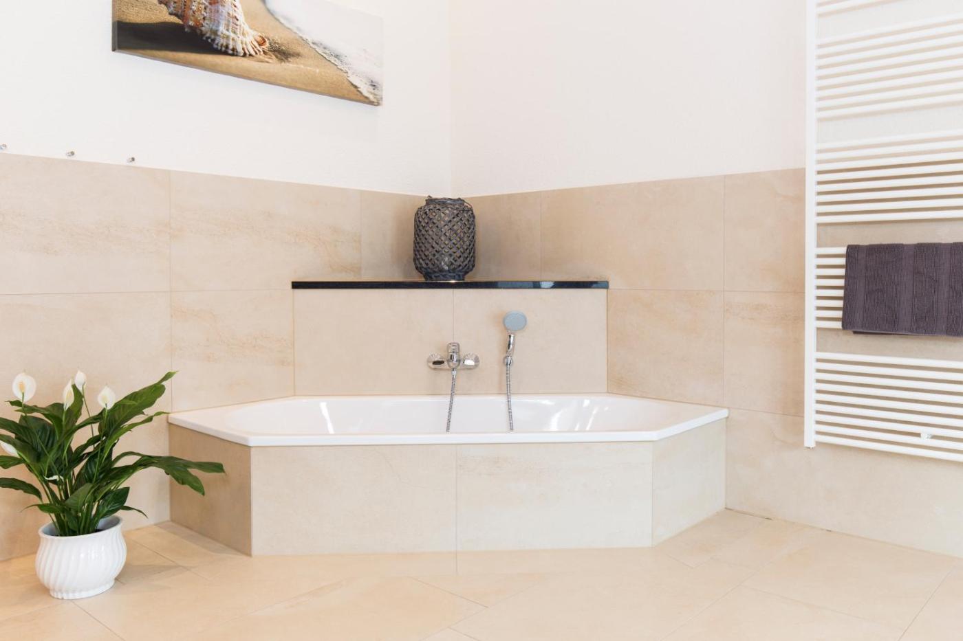 Ferienhaus. Guests will have a special experience as this holiday home provides a hot tub, a sauna and a fireplace. This spacious holiday home consists of 1 living room, 2 separate bedrooms and 2 bathrooms with a bath and bathrobes. Guests will find a stovetop, a refrigerator, a dishwasher and an oven in the well-equipped kitchen. The holiday home also offers a barbecue. This holiday home features a washing machine, a coffee machine, a flat-screen TV and a terrace. The unit offers 3 beds.