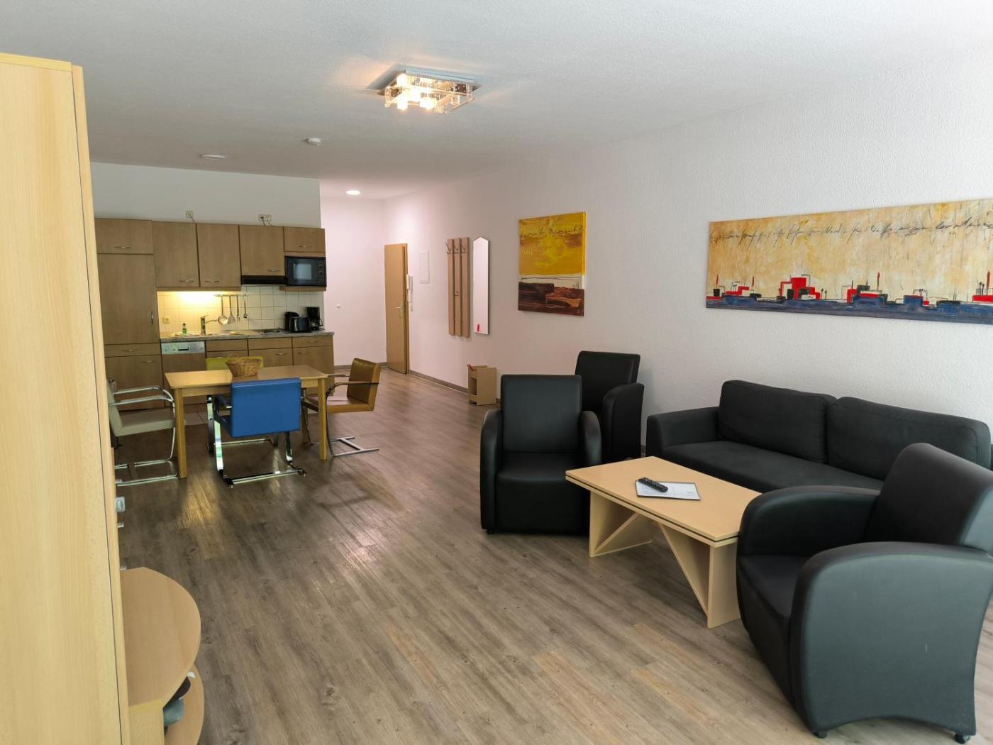 Apartment mit Terrasse. This spacious apartment is comprised of 1 living room, 1 separate bedroom and 1 bathroom with a shower. In the kitchen, guests will find a stovetop, a refrigerator, a dishwasher and kitchenware. A seating area with a TV, a coffee machine and a terrace are featured in this apartment. The unit offers 2 beds.