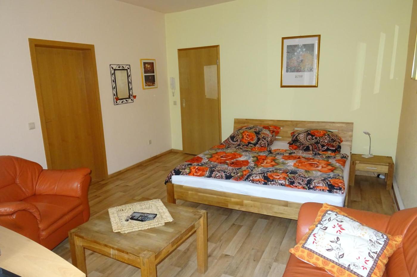 Apartment mit 1 Schlafzimmer. The well-fitted kitchen features a stovetop, a refrigerator, an oven and a tea and coffee maker. The apartment provides heating. The unit offers 1 bed.