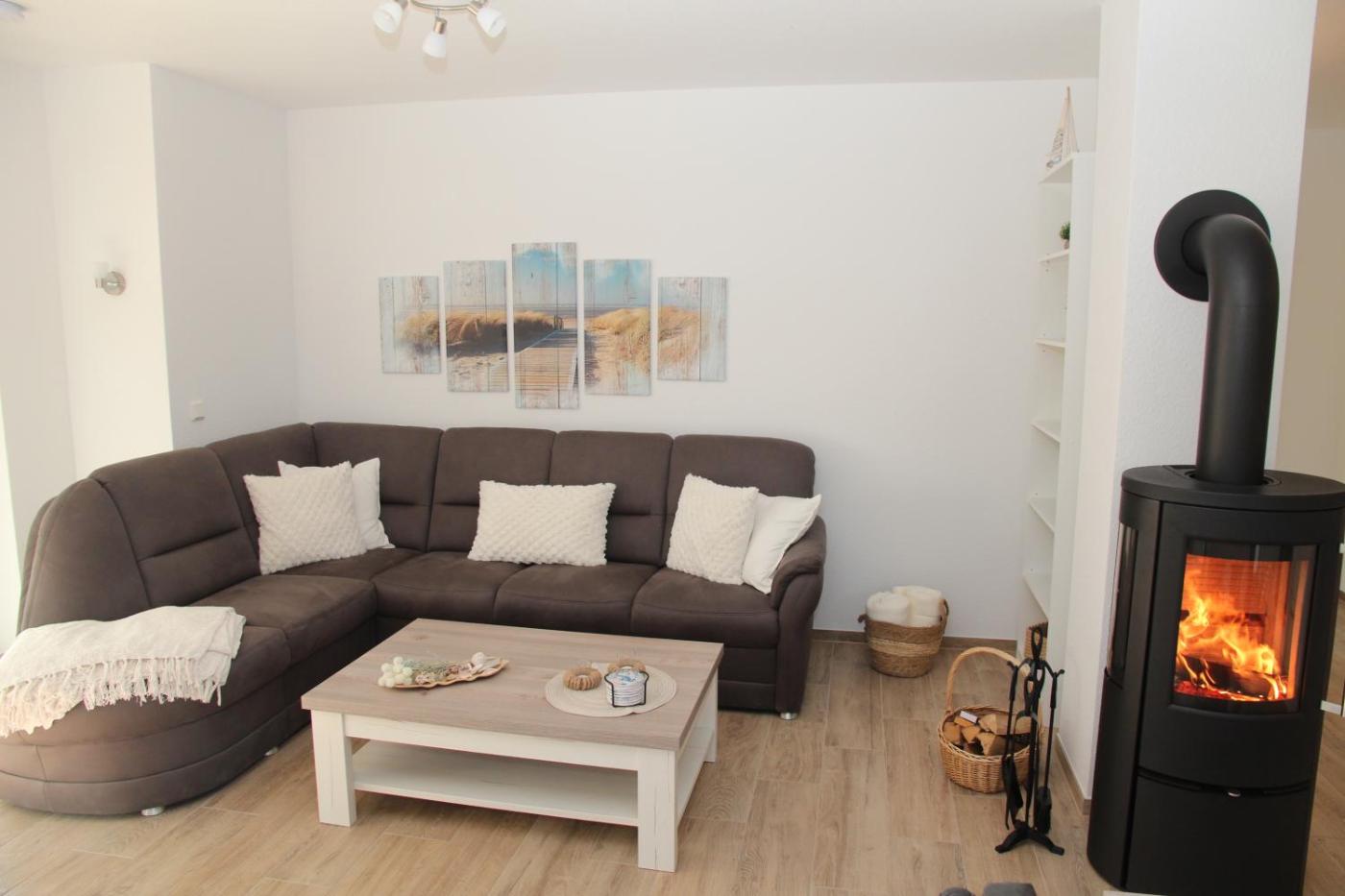 Apartment mit Terrasse. The fireplace is the standout feature of this apartment. Boasting 2 bedrooms, this spacious apartment has 1 bathroom with a shower, a seating area and terraceyou can relax. Guests will find a stovetop, a refrigerator, a dishwasher and kitchenware in the fully equipped kitchen. The apartment also includes a barbecue. The apartment features a TV, a washing machine, a coffee machine, a wardrobe as well as garden views. The unit offers 2 beds.