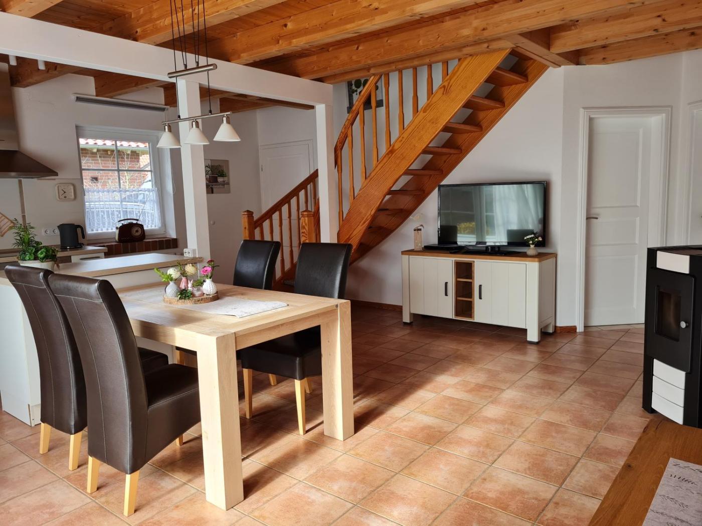 Ferienhaus. The fireplace is a top feature of this holiday home. Boasting 3 bedrooms, this holiday home has 2 bathrooms with a shower, a seating area and terraceyou can relax. Meals can be prepared in the well-fitted kitchen, which features a stovetop, a refrigerator, a dishwasher and kitchenware. The holiday home features a TV, a washing machine, a private entrance, a coffee machine as well as garden views. The unit offers 4 beds.