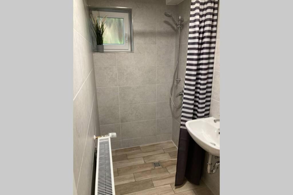 Apartment mit 3 Schlafzimmern. Featuring a private entrance, this spacious apartment also is comprised of 3 separate bedrooms and 2 bathrooms with a walk-in shower and a hairdryer. The fully equipped kitchenette features a stovetop, a refrigerator, an oven and a toaster. The apartment offers a washing machine, a tea and coffee maker, tumble dryer, heating and a flat-screen TV with streaming services. The unit offers 5 beds.