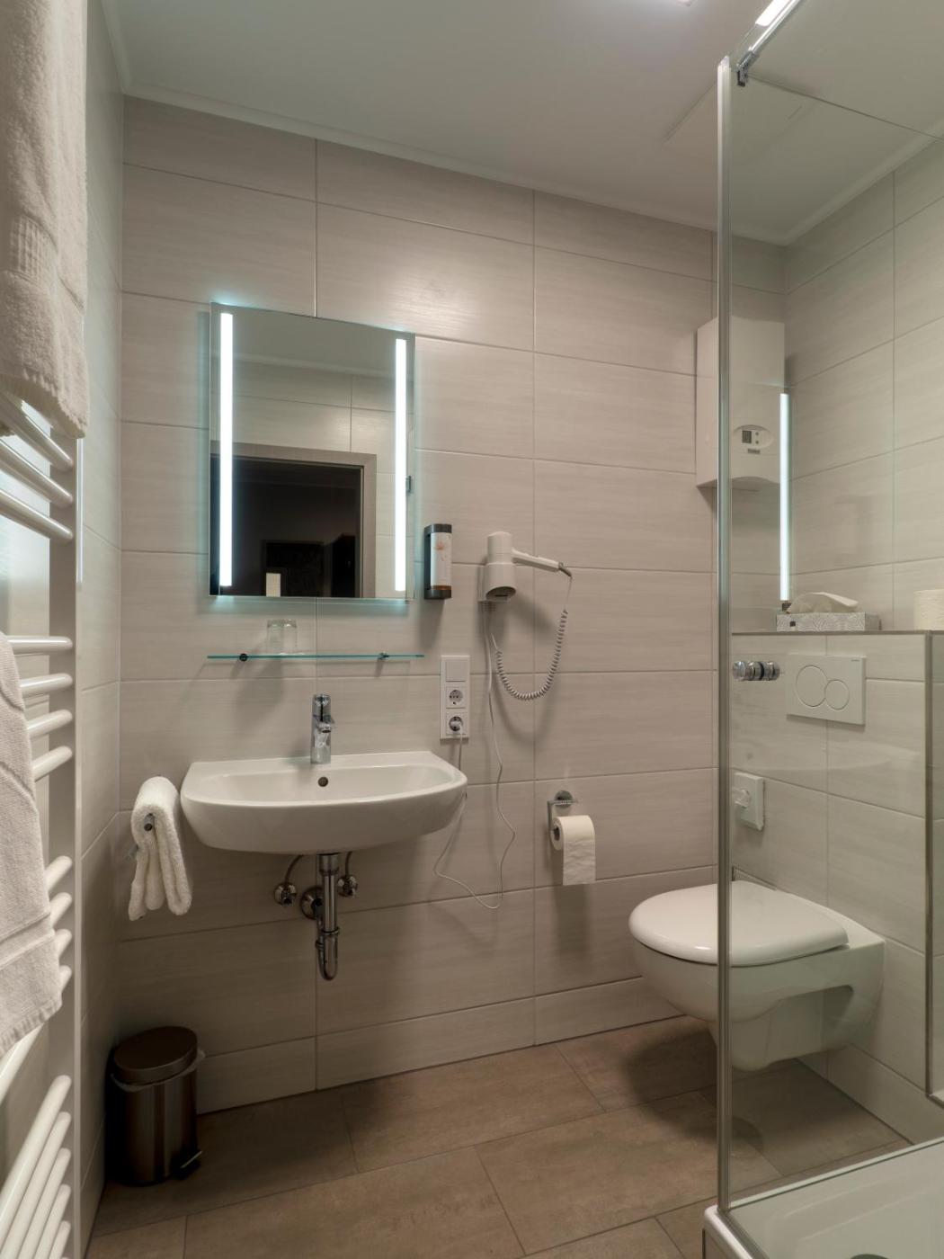 Einzelzimmer. Offering free toiletries, this single room includes a private bathroom with a shower and a hairdryer. The single room features parquet floors, a seating area with a flat-screen TV, soundproof walls, a wardrobe as well as garden views. The unit offers 1 bed.