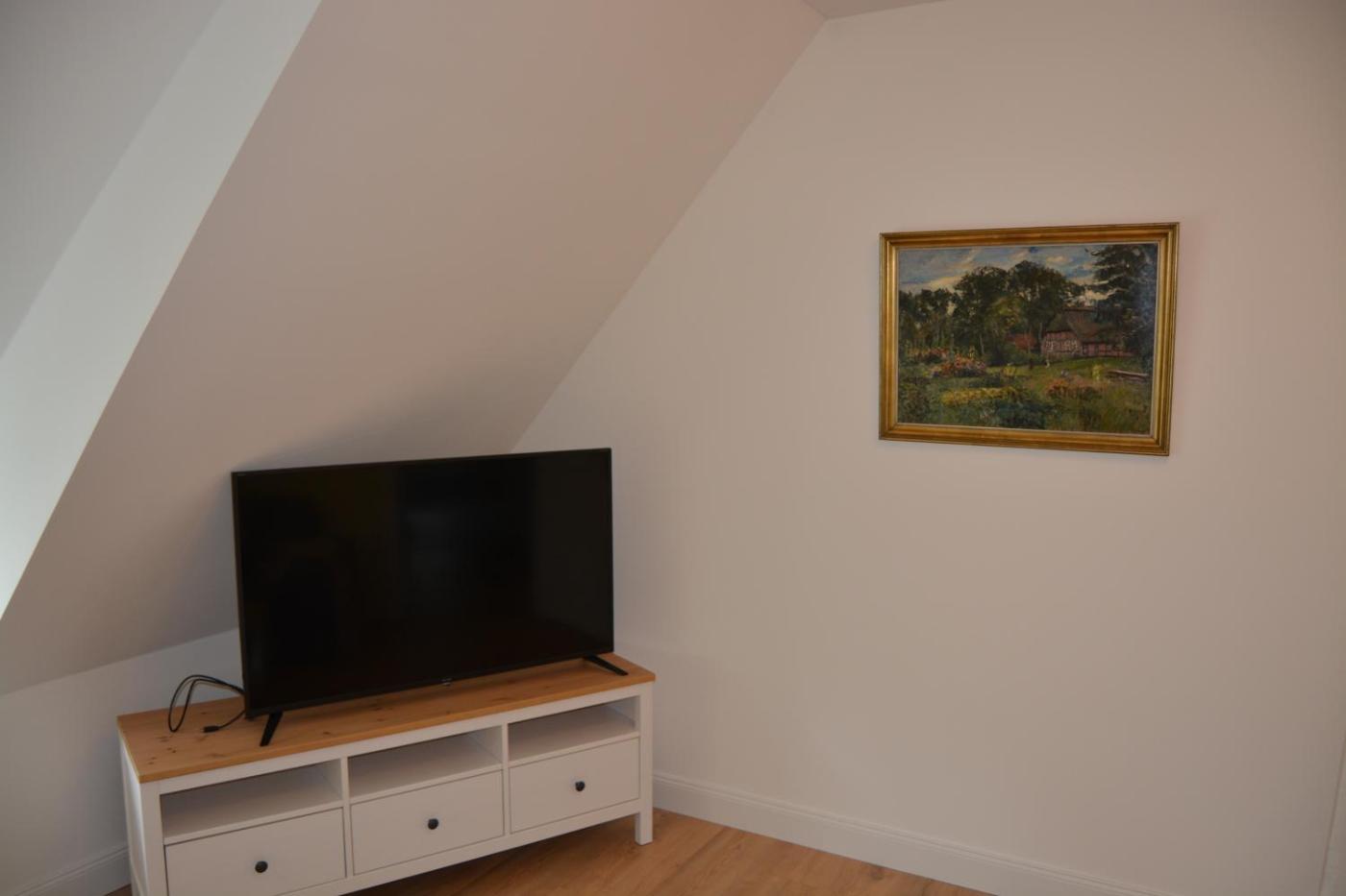 Apartment mit Meerblick. Ruhig gelegenes Bauernhaus aus dem 17.18. Jahrhundert mit einem über 2.000 m² großen Garten. Das renovierte Herrenhaus verfügt über eine Südterrasse und einen Speisesaal, die beide Aussicht auf die Ostsee bieten. Auch 2 Schlafzimmer, eine voll ausgestattete Küche und ein geräumiges Bad mit einer Badewanne und einer Dusche sind vorhanden. ;