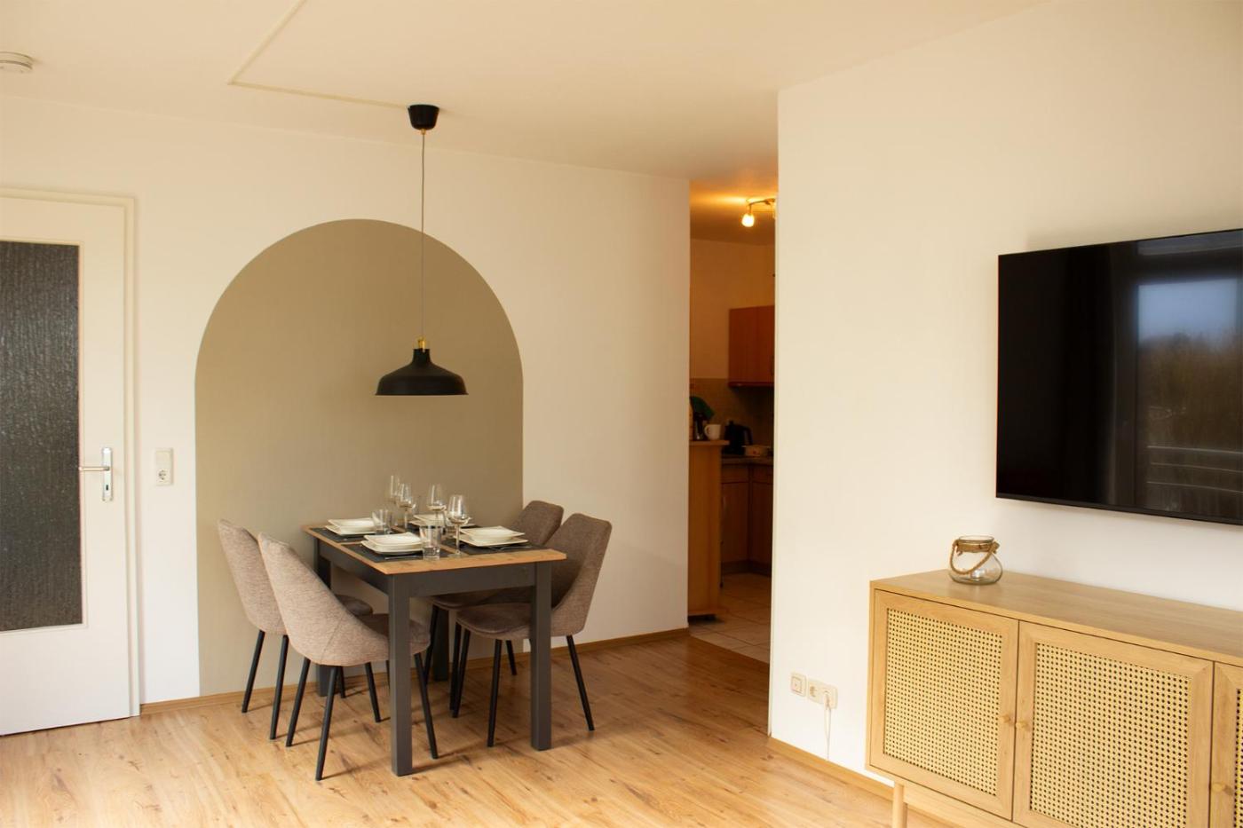 Apartment mit Terrasse. This apartment comprises 1 living room, 1 separate bedroom and 1 bathroom with a bath and a shower. Guests can make meals in the kitchen that comes with a stovetop, a refrigerator, a dishwasher and kitchenware. This apartment features a coffee machine, a seating area, a flat-screen TV with cable channels and a terrace. The unit offers 2 beds.