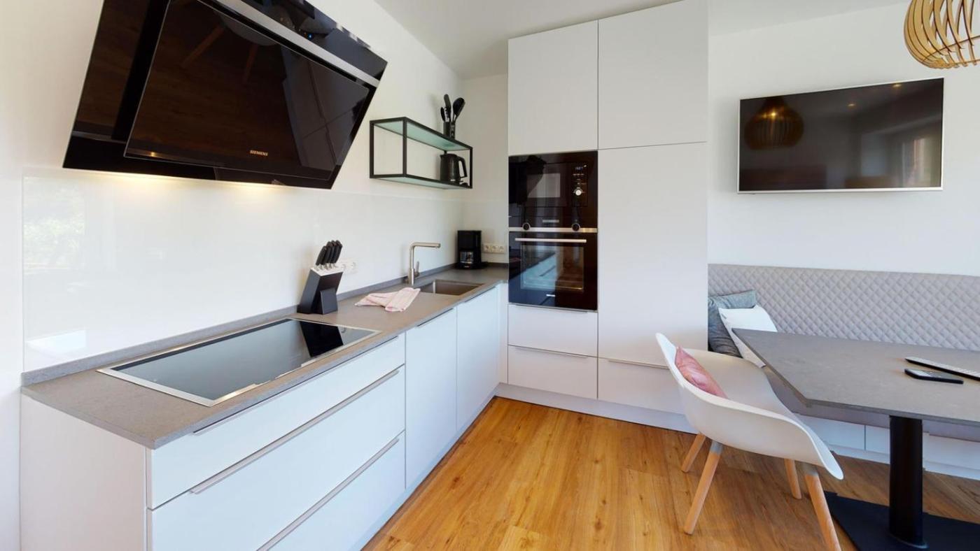 Apartment mit Terrasse. The sauna and fireplace are the standout features of this apartment. Featuring 2 bedrooms, this spacious apartment offers 2 bathrooms with a shower, a seating area and terraceyou can relax. The fully equipped kitchen features a stovetop, a refrigerator, a dishwasher and kitchenware. The apartment provides a TV with cable channels, a washing machine, a coffee machine, a wardrobe as well as garden views. The unit has 2 beds.