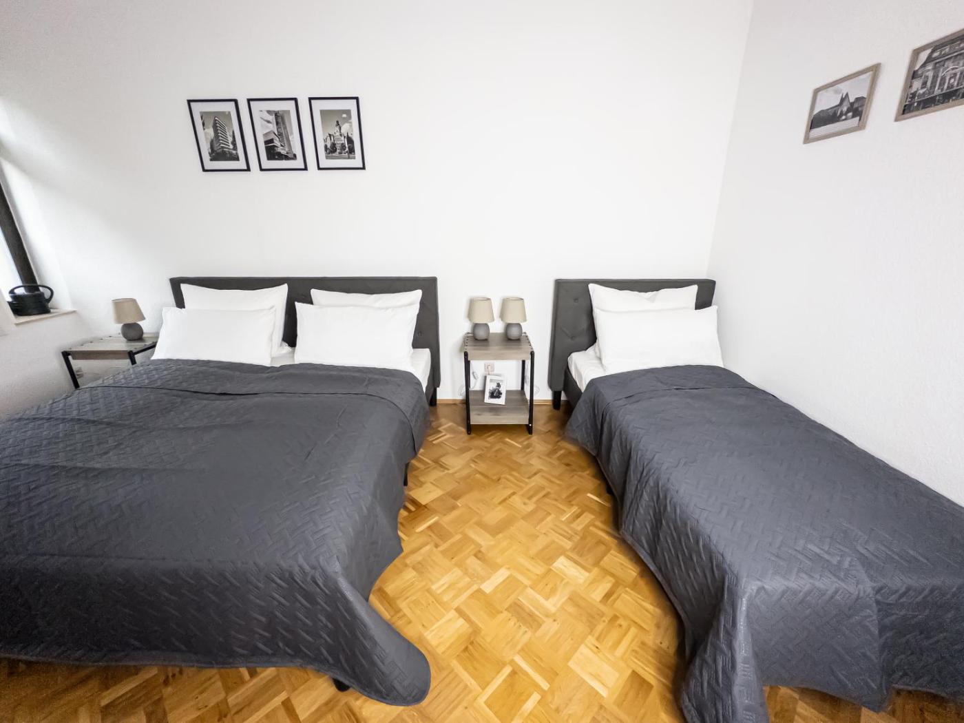 Apartment mit 2 Schlafzimmern. Meals can be prepared in the well-fitted kitchen, which is equipped with a stovetop, a refrigerator, a dishwasher and kitchenware. The spacious apartment provides a washing machine, a tea and coffee maker, a dining area as well as a terrace with ancourtyard view. The unit offers 4 beds.