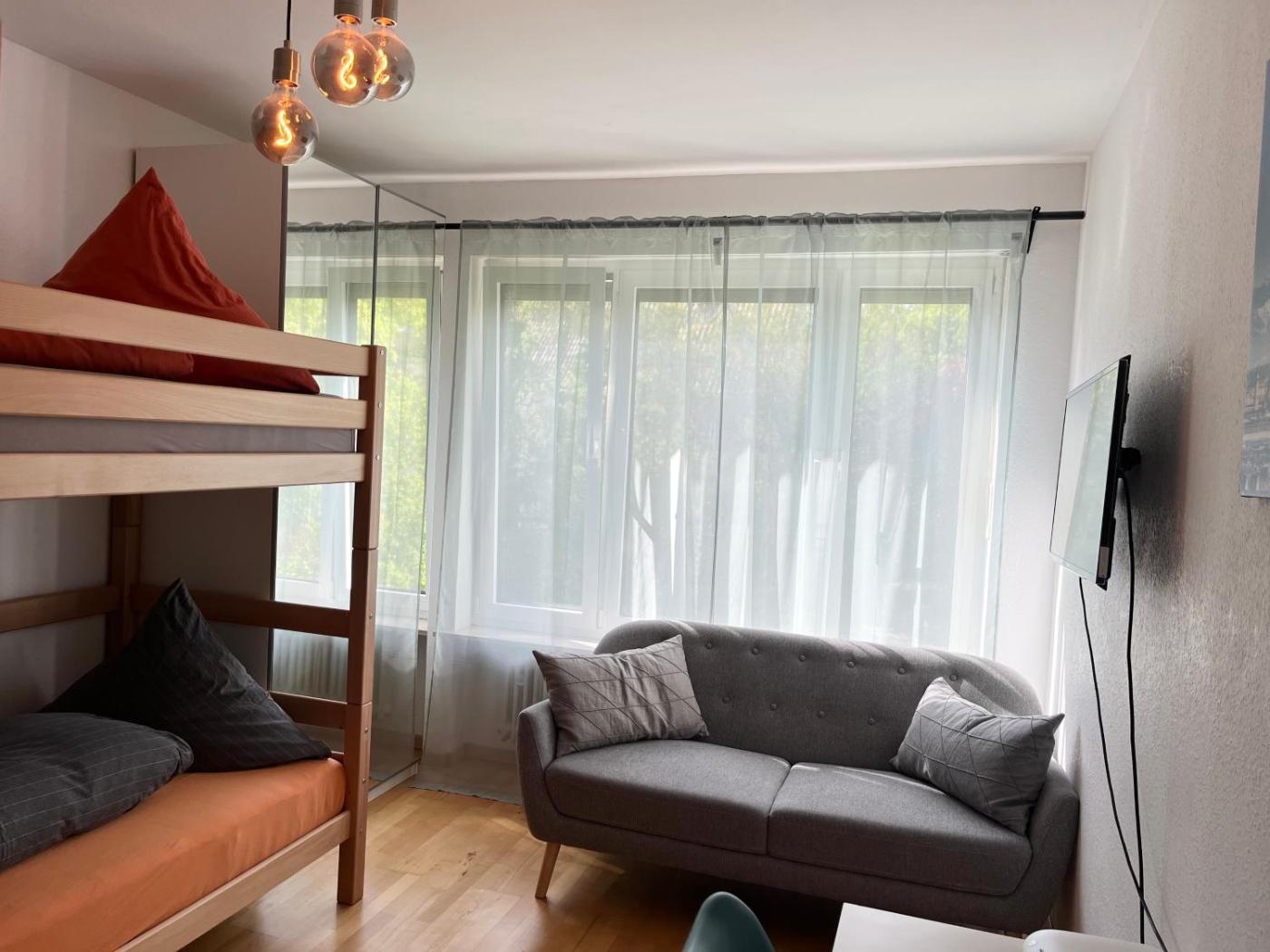 Economy Vierbettzimmer mit Gemeinschaftsbad. The quadruple room offers a dining area, a wardrobe, as well as a shared bathroom featuring a shower and a hairdryer. Guests will find a stovetop, a refrigerator, a dishwasher and kitchenware in the kitchen. The quadruple room also provides guests with a barbecue. The quadruple room provides a flat-screen TV with streaming services, a washing machine, a coffee machine, a seating area as well as garden views. The unit offers 2 beds.