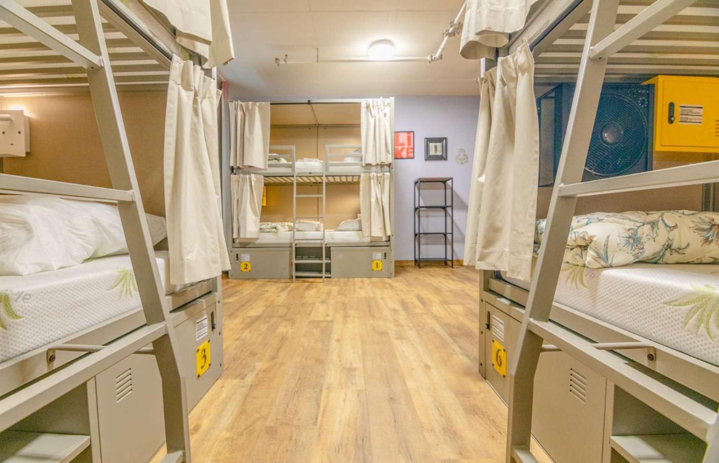 Gemischter Schlafsaal mit 6 Betten. Dieser Schlafsaal verfügt über schallisolierte Wände, einen Safe und ein eigenes Bad mit einer Dusche. Die Zimmer auf den oberen Etagen sind mit dem Aufzug erreichbar. Die Wohneinheit ist mit 6 Betten ausgestattet. ;