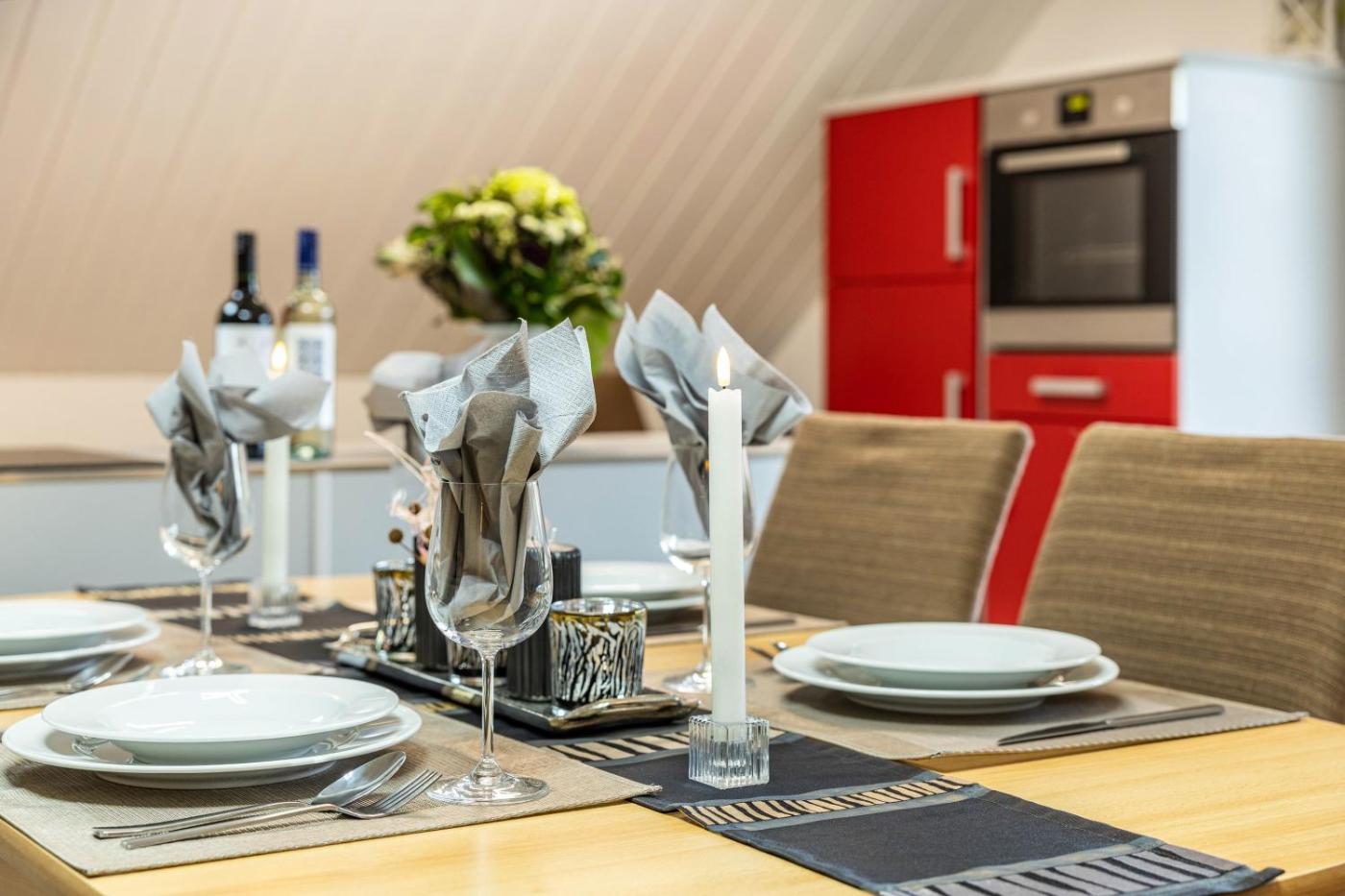 Three-Bedroom Premium Apartment with Balcony. The spacious apartment features 3 bedrooms and 1 bathroom with a hairdryer and free toiletries. Guests can make meals in the kitchen that is equipped with a dishwasher, kitchenware, an oven and a microwave. Featuring a balcony with garden views, this apartment also provides a private entrance and a TV with streaming services. The unit offers 2 beds and 1 futon.
