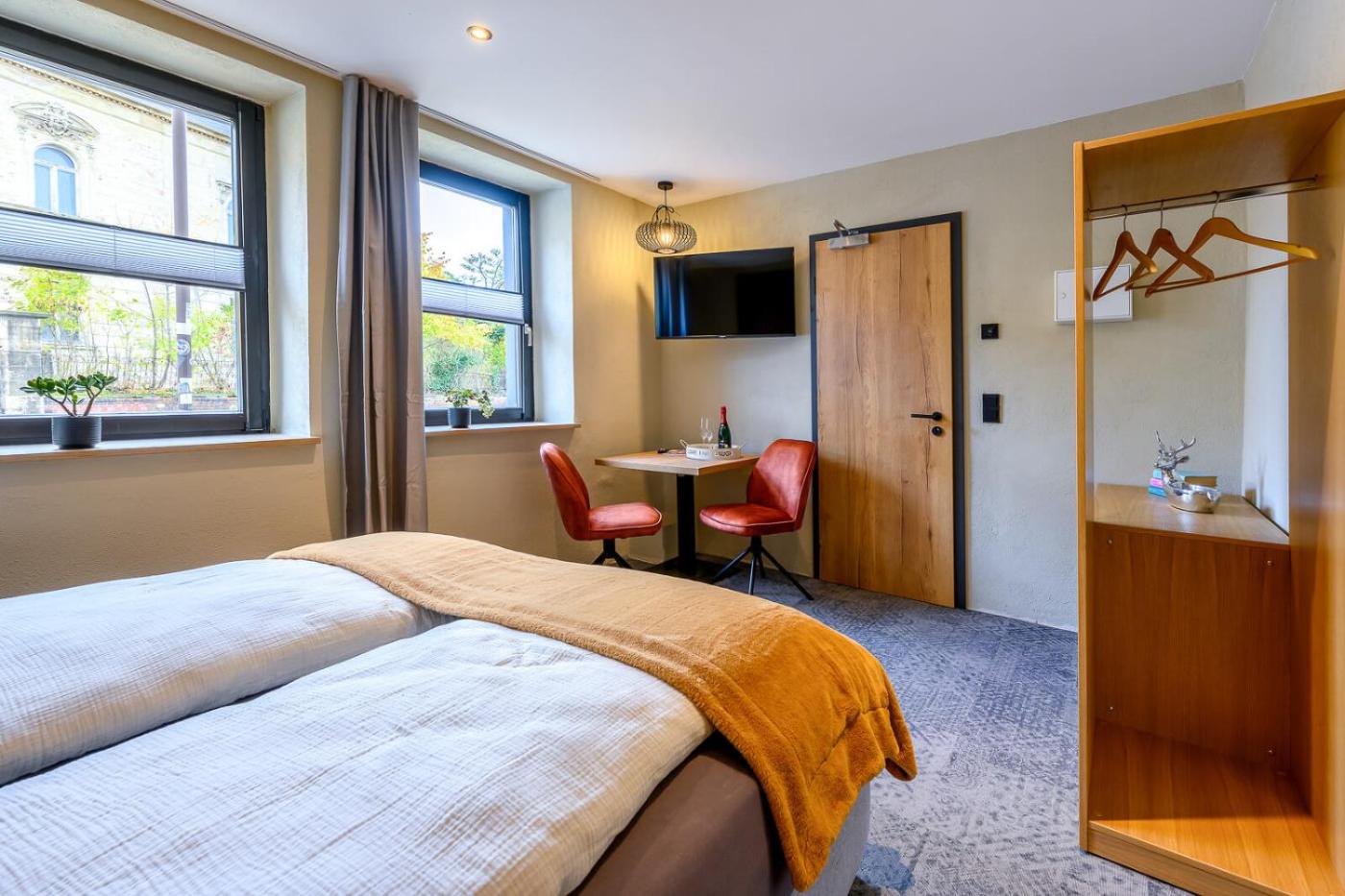 In der Unterkunft Pension Domquartier Naumburg sind die Zimmer ausgestattet mit einem Kleiderschrank, einem Flachbild-TV, einem eigenen Badezimmer, Bettwäsche und Handtüchern.