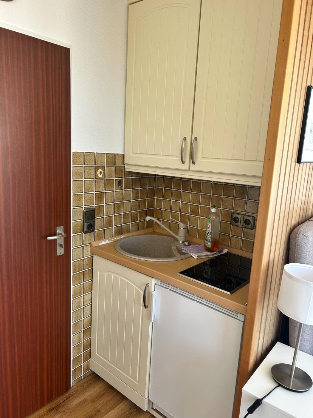 Diese Ferienwohnung ist ausgestattet mit einem Wohnzimmer und einer voll ausgestatteten Küche mit einem Kühlschrank und einem Toaster.