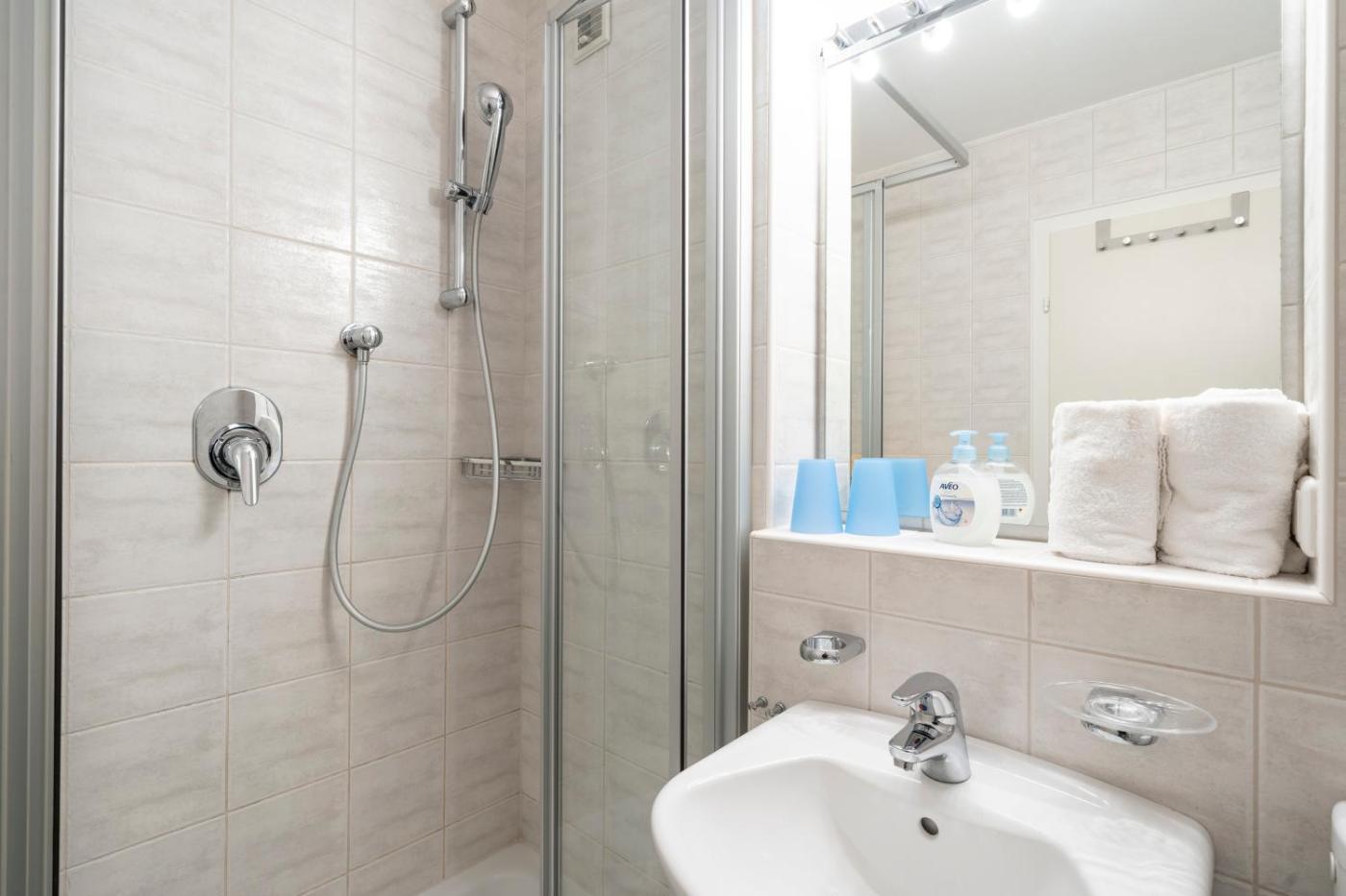 Apartment mit Balkon. This apartment is comprised of 1 bedroom, a seating area with a sofa and 1 bathroom with a shower. Meals can be prepared in the well-fitted kitchenette, which comes with a stovetop, a refrigerator, kitchenware and a microwave. This apartment comprises a dining area, a flat-screen TV with satellite channels a coffee machine and a balcony. The unit offers 1 bed.