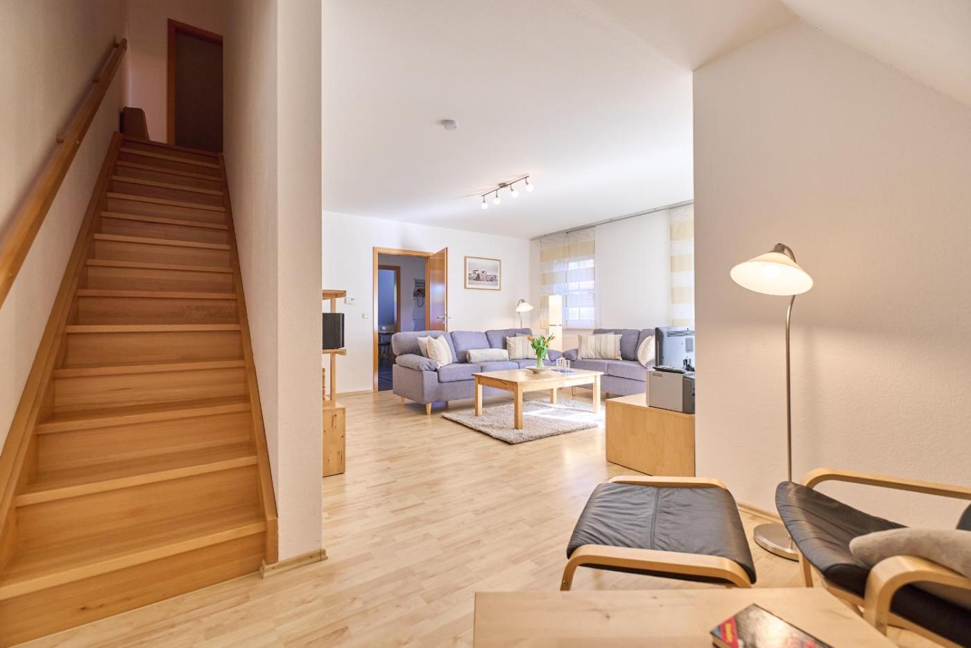 Apartment mit Balkon. This spacious apartment is comprised of a kitchen, a seating area, 2 separate bedrooms and 1 bathroom with a shower and a hairdryer. The well-fitted kitchen features a stovetop, a refrigerator, a dishwasher and kitchenware. This apartment has a coffee machine, a wardrobe, a TV with satellite channels and a balcony. The unit offers 3 beds.