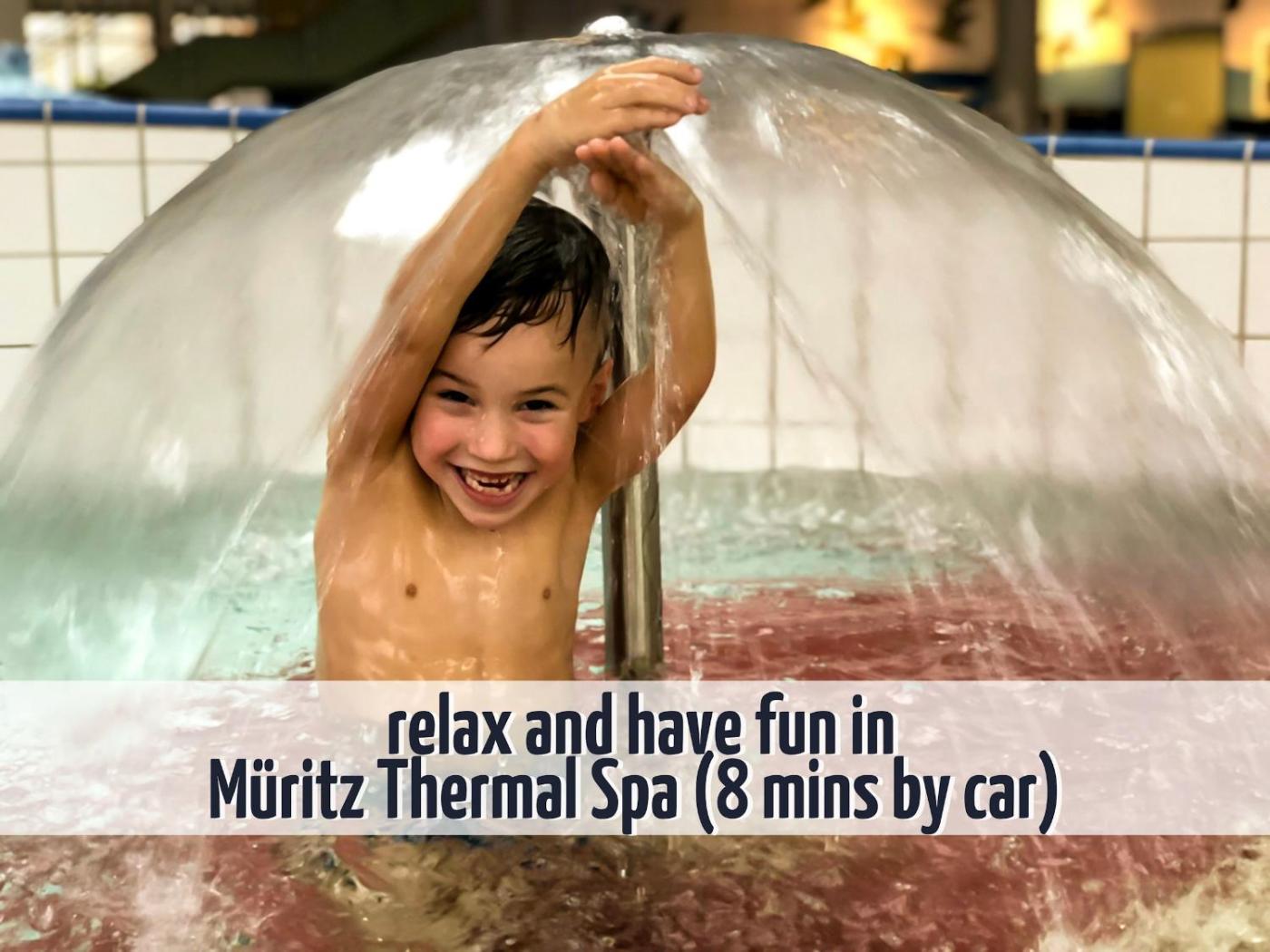 In der Unterkunft Wiesengeflüster S5 Gruppenhaus haustierfrei mit Aussicht, Wiese und Müritznähe können Gäste eine Sauna nutzen.