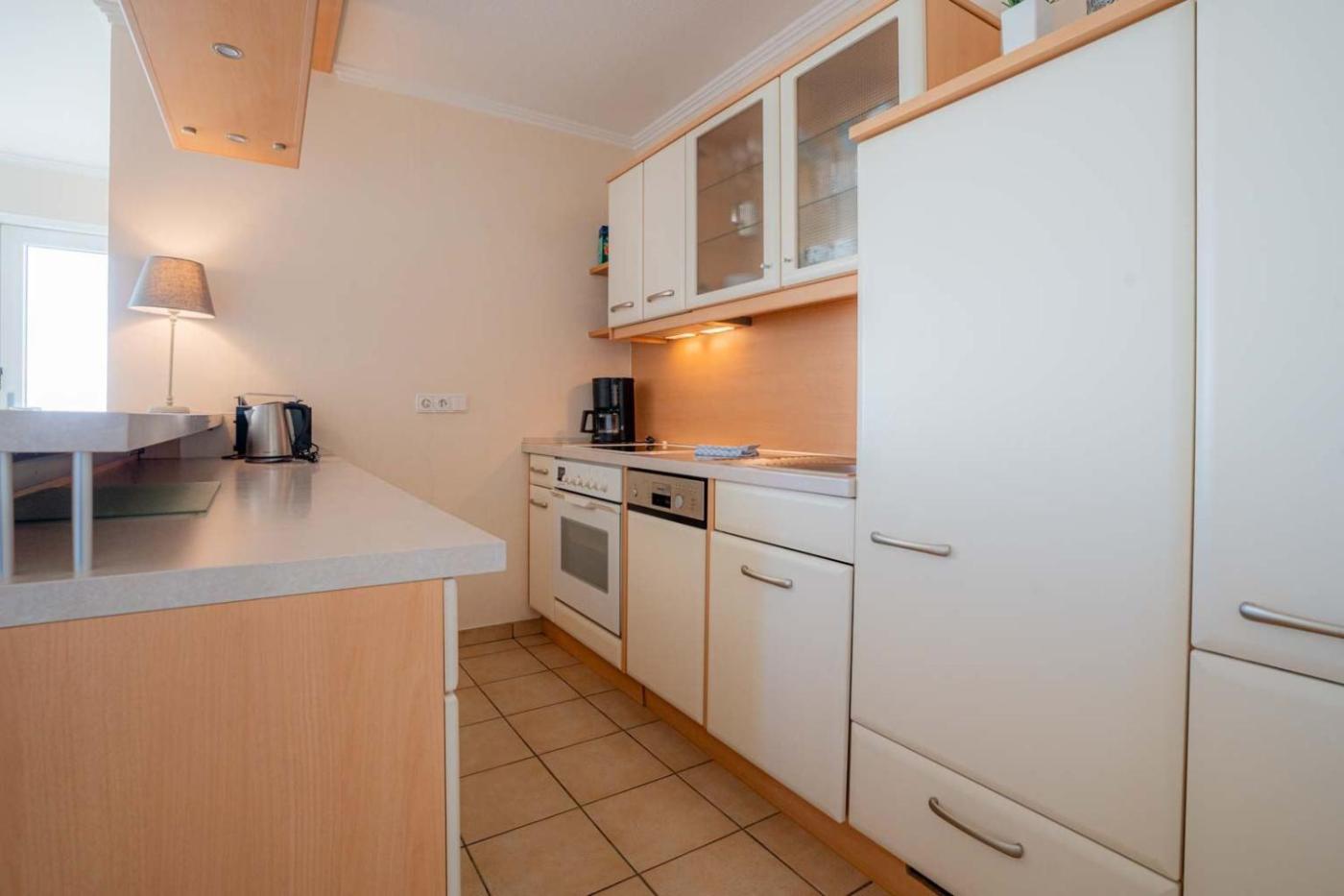 Apartment mit 2 Schlafzimmern und Balkon. The apartment features 2 bedrooms, 1 bathroom with a shower and a kitchen. The kitchen is equipped with a refrigerator, a dishwasher and an oven. The apartment has a washing machine, tumble dryer as well as a balcony with sea views.