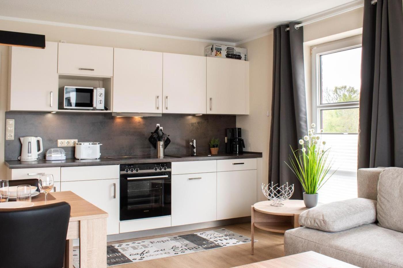 Diese Ferienwohnung ist versehen mit einem Satelliten TV. Die Küchenzeile ist ausgestattet mit einem Kühlschrank und einem Ofen, einer Mikrowelle sowie einer Kaffeemaschine und einem Wasserkocher.