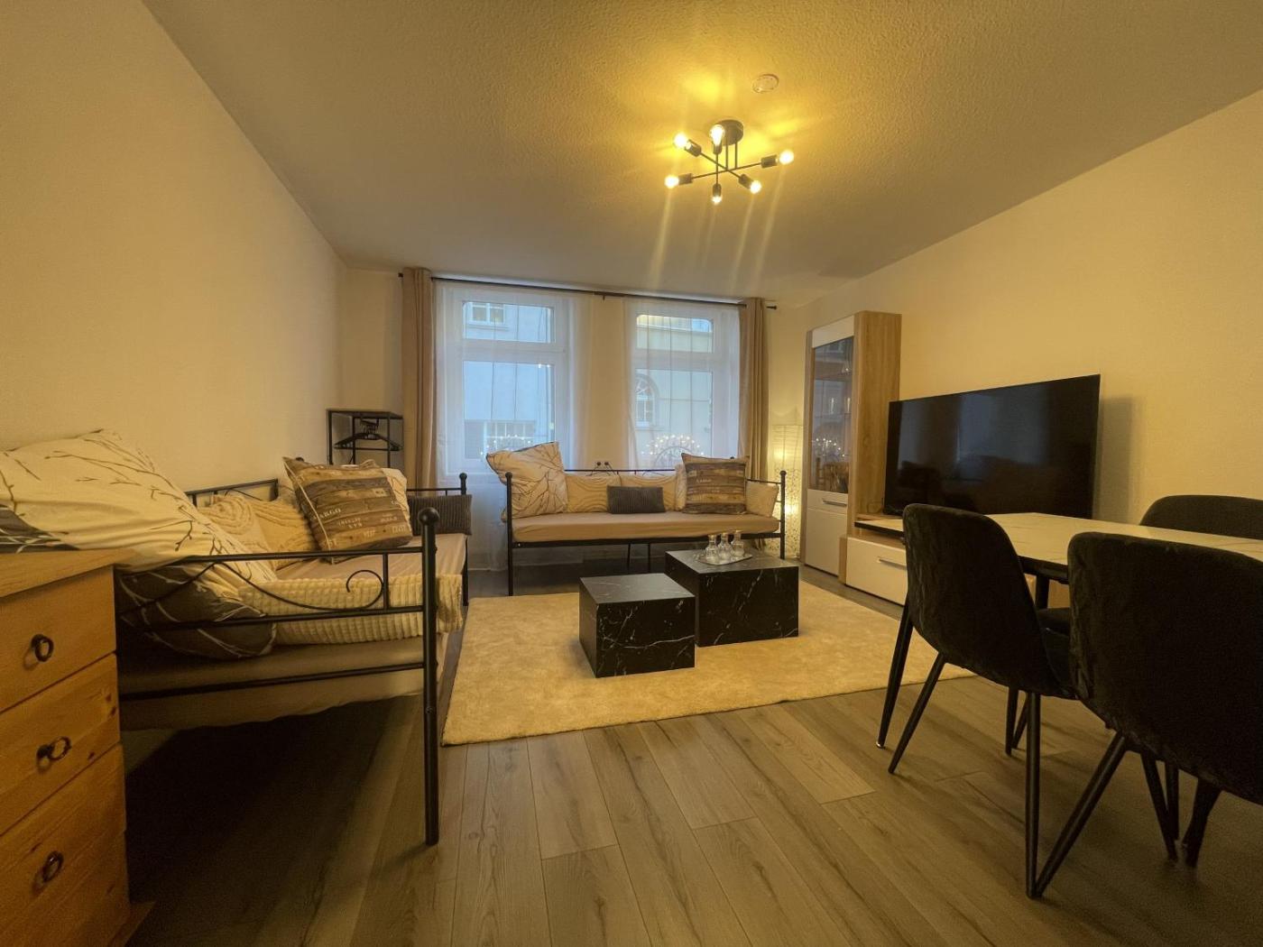 Apartment mit 2 Schlafzimmern. This spacious apartment includes 1 living room, 2 separate bedrooms and 1 bathroom with a bath and free toiletries. The well-equipped kitchen has a stovetop, a refrigerator, kitchenware and an oven. The apartment offers a washing machine, a tea and coffee maker, a seating area, a flat-screen TV with streaming services, as well as a quiet street view. The unit has 4 beds.