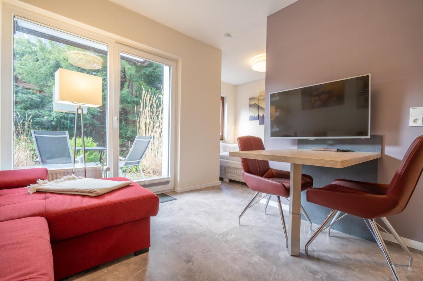 Apartment mit 1 Schlafzimmer. This apartment includes 1 living room, 1 separate bedroom and 1 bathroom with a shower and a hairdryer. In the kitchenette, guests will find a stovetop, a refrigerator, a dishwasher and an oven. Boasting a terrace, this apartment also offers a coffee machine, a seating area and a flat-screen TV. The unit has 2 beds.