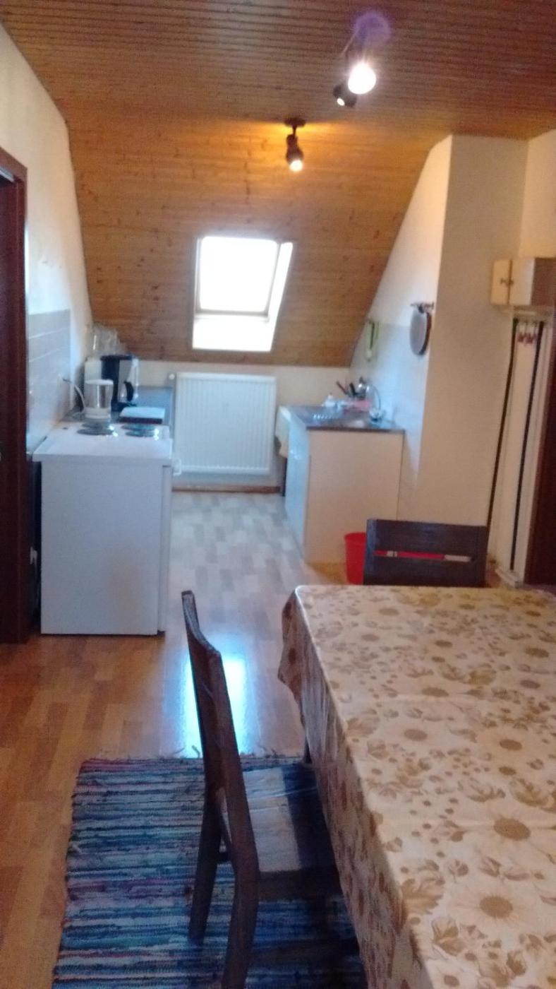 Zweibettzimmer mit eigenem Bad außerhalb des Zimmers. The twin room features a dining area and a wardrobe, as well as a private bathroom featuring a shower. Guests can make meals in the kitchenette that is equipped with a stovetop, a refrigerator, kitchenware and an oven. The spacious twin room provides a flat-screen TV with satellite channels, a private entrance, a tea and coffee maker, a seating area as well as garden views. The unit offers 4 beds. ;
