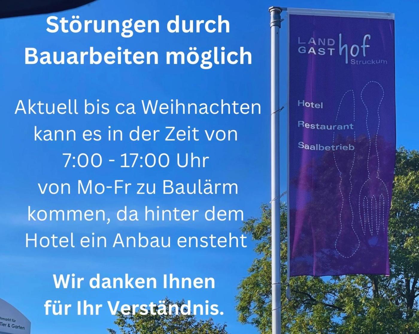 Der Landgasthof Struckum liegt verkehrsgünstig direkt an der Straße B5, 15 km vom Bahnhof Husum und eine 40-minütige Fahrt von der Autobahn A20 entfernt. Die Privatparkplätze am Hotel nutzen Sie kostenfrei.