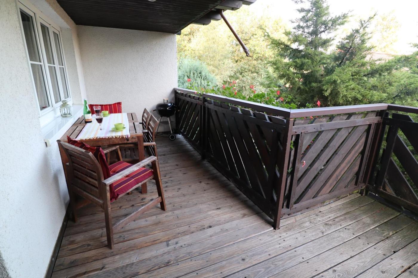 Apartment mit Balkon. This spacious apartment comes with 1 living room, 2 separate bedrooms and 1 bathroom with a bath and free toiletries. Guests will find a stovetop, a refrigerator, kitchenware and an oven in the kitchenette. The apartment also includes a barbecue. This apartment has a private entrance, flat-screen TV with satellite channels, garden views, as well as winechampagne for guests. The unit has 3 beds.