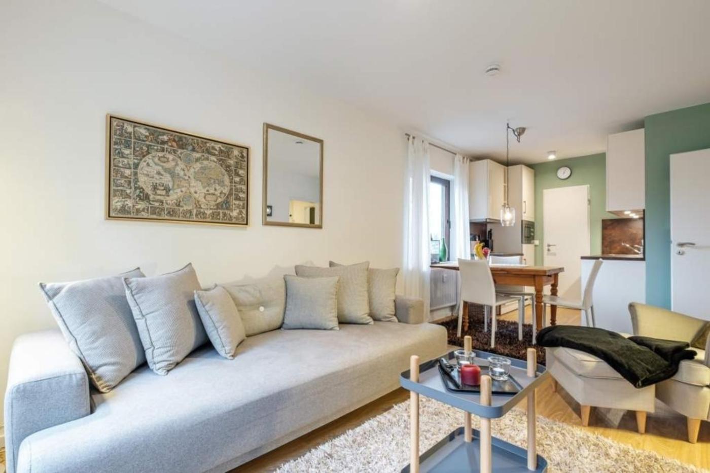 Apartment. This apartment consists of 1 living room, 1 separate bedroom and 1 bathroom with a shower. Meals can be prepared in the kitchen, which is equipped with a stovetop, a refrigerator, a dishwasher and an oven. Featuring a balcony, this apartment also provides a washing machine, a coffee machine and a TV. The unit offers 3 beds.