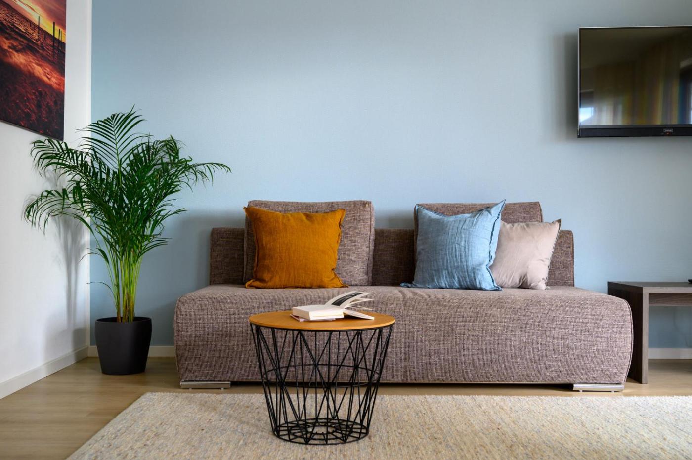 Apartment mit 1 Schlafzimmer. The spacious apartment features 1 bedroom and 1 bathroom with a walk-in shower and bathrobes. Guests can make meals in the kitchen that is fitted with a stovetop, a refrigerator, a dishwasher and kitchenware. Featuring a balcony with garden views, this apartment also offers a washing machine and a flat-screen TV. The unit offers 1 bed.