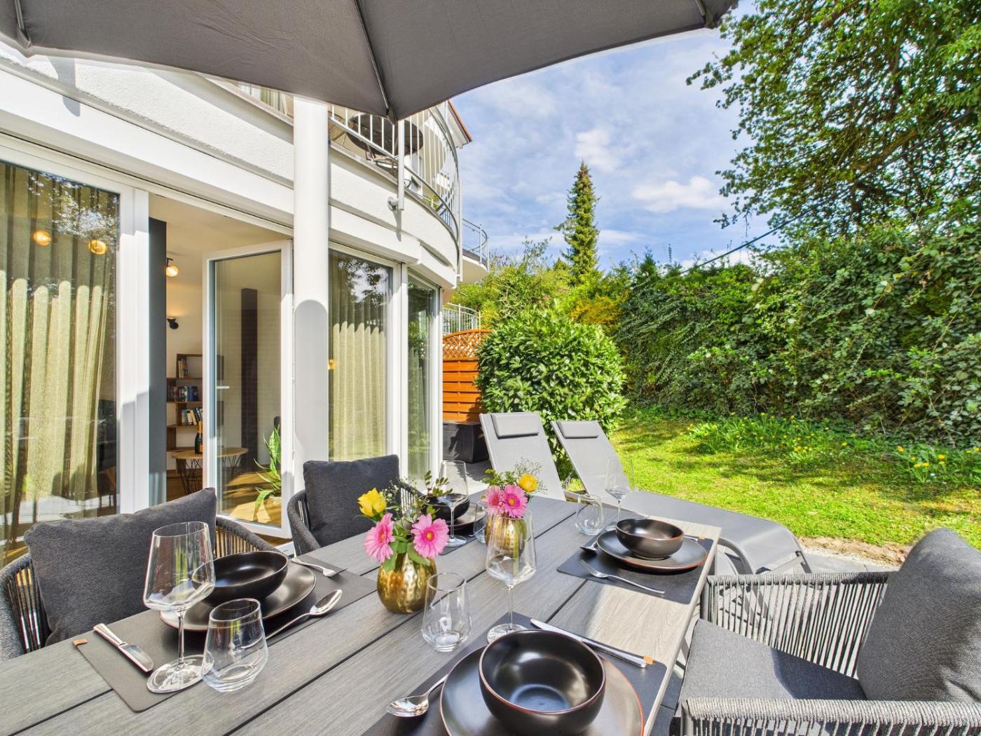 Weniger als 26 km von Messe Friedrichshafen und 45 km von MAC - Museum Art & Cars entfernt gelegen bietet die Unterkunft Hochwertige Ferienwohnung in Seenähe mit Terrasse & Vollausstattung kostenloses WLAN und einen Garten.