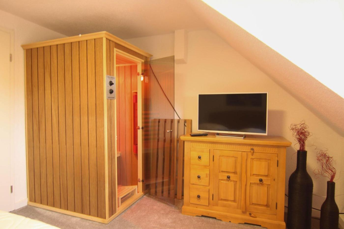 Alle Zimmer sind mit einem TV und einem DVD-Player ausgestattet.
