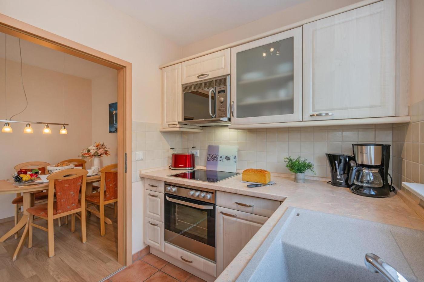 Apartment mit Terrasse. This spacious apartment features 1 living room, 2 separate bedrooms and 1 bathroom with a shower and a hairdryer. In the fully equipped kitchen, guests will find a stovetop, a refrigerator, a dishwasher and kitchenware. Boasting a terrace, this apartment also features a coffee machine, a seating area and a TV with cable channels. The unit has 3 beds.